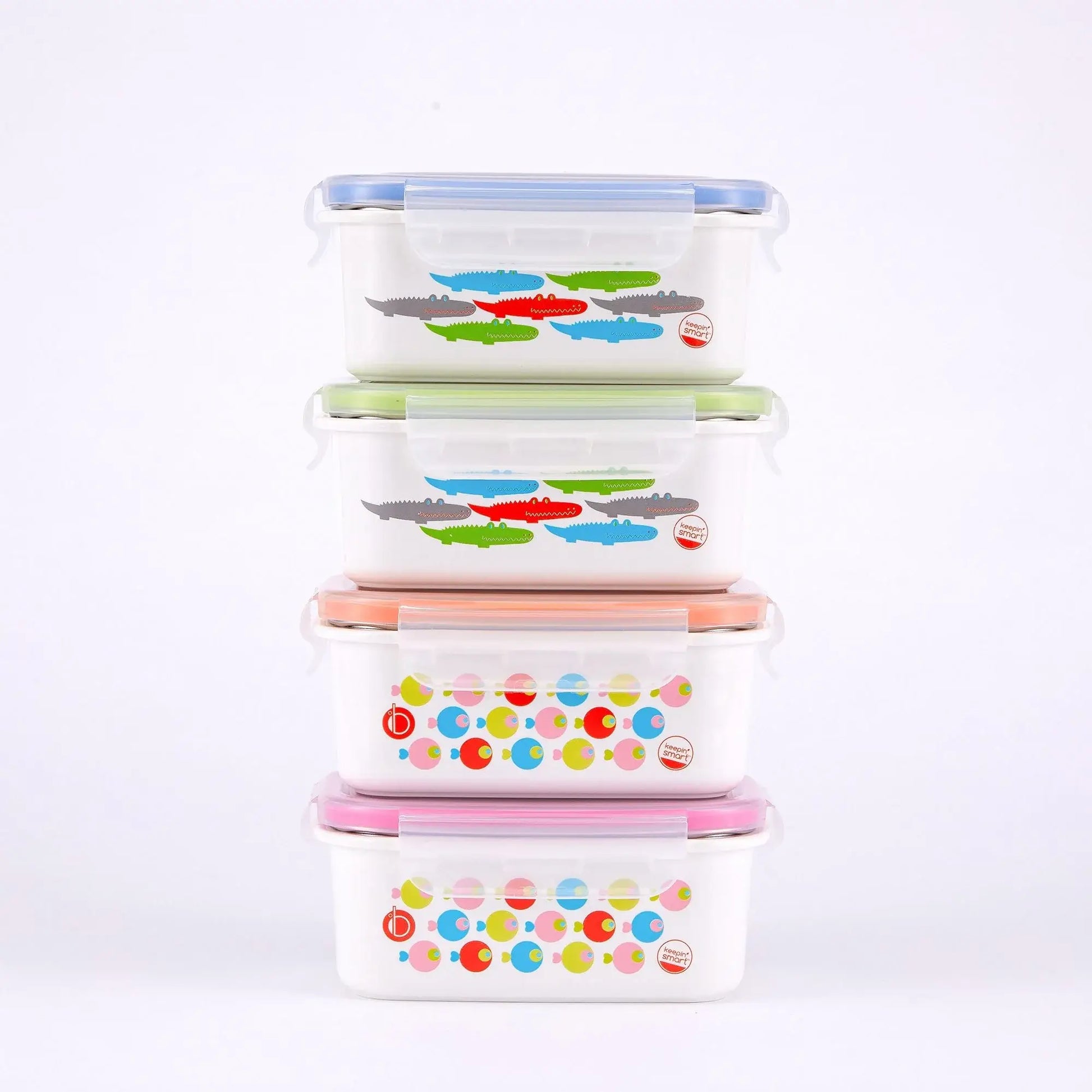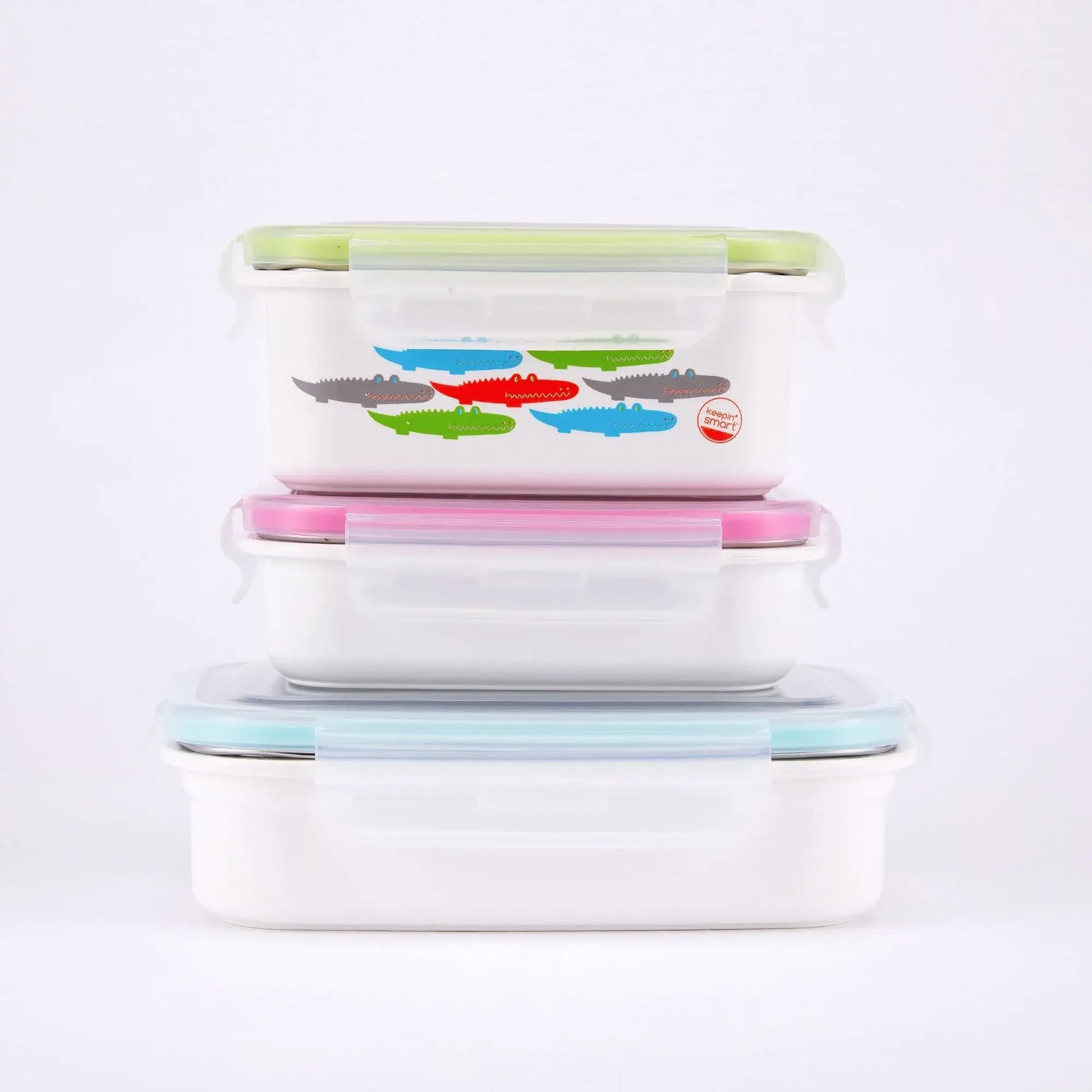 Our Keepin’ Smart 16oz. Stainless Steel Lunch Bento Box with leak proof lid is perfect for packing foods at home and on the go. The removable plastic outer shell protects little hands from heat/cold and helps keep food cold/hot longer with its double lined design. Our rectangular lunch boxes make a great alternative to one time use plastic sandwich bags. Ideal for zero waste school lunches. All parts can be separated for easy washing. Made from the highest quality, food grade 304 stainless steel (18/10 stainless) in South Korea. This product is nontoxic, BPA free, phthalate free, PVC free and lead free. Dimensions: 5.88” x 4.25” x 2.5”.
