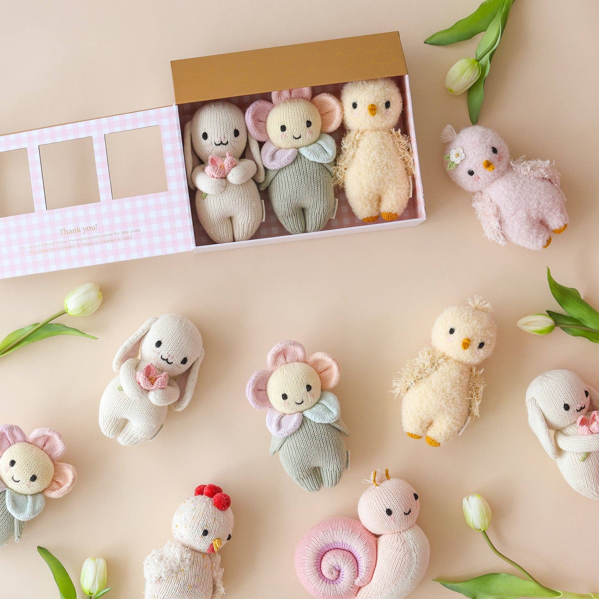 Absolutely adorable and oh so collectible! Our hand-knit baby animals are the perfect way to start or grow your cuddle+kind collection. Every heirloom-quality baby animal is lovingly handcrafted from natural Peruvian cotton yarn, with carefully considered details. At just a little bigger than your hand, they’re the softest, most lovable companions we could imagine. Your customers will love collecting them all!