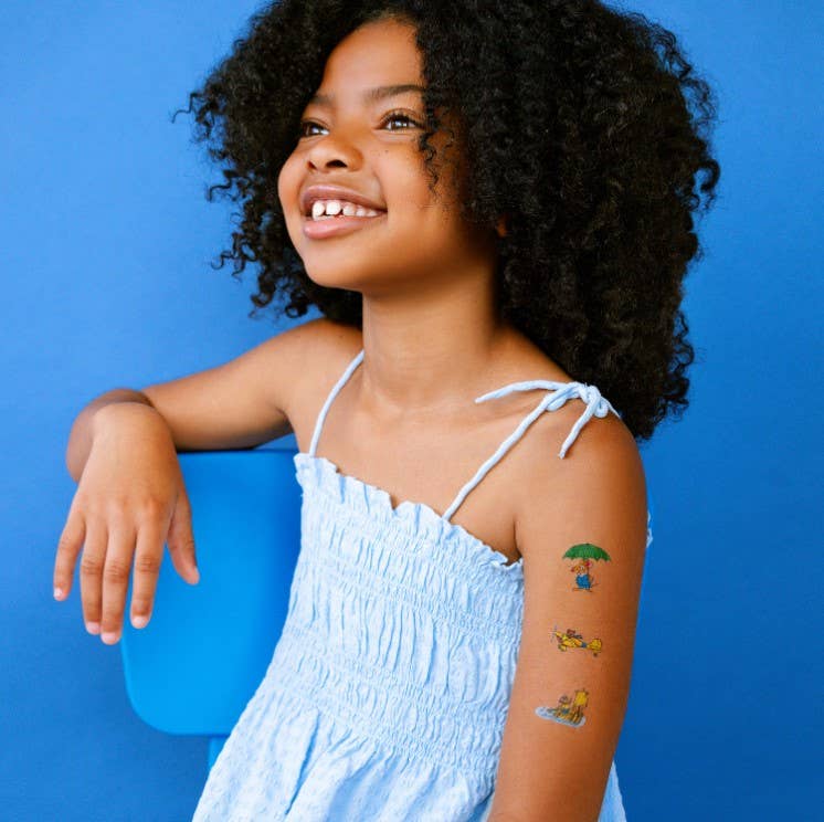 Busy World Mice Tattoo Sheets by artist Richard Scarry. Safety tested, vegan, cruelty free, and made in the US with domestic and imported materials. Fake tattoos by real artists! Tattly Sheets contain multiple designs that are meant to be cut apart and shared! Each style comes with two sheets packaged in a polybag with matching backer card. Total size including packaging: 4.4" x 8.25"