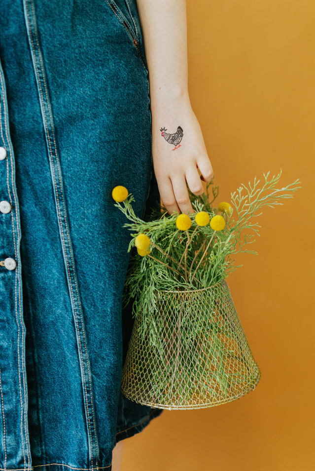 We love this plucky little Chicken Tattly by real tattoo artist WONKYCUBE. This egg-cellent design will give you that real tattoo look without the pain!