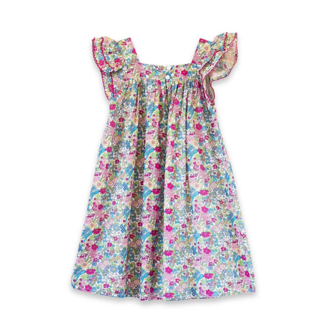 The charming Everly Dress features a square neck that gives it an iconic style. The standout feature is the double layers of flutter sleeves, beautifully finished with picoting trim, creating a sweet and dainty look. The A-line body of the dress offers a comfortable and flattering fit, allowing for ease of movement and play. Many gathers and lined body make it twirl worthy and perfect for special occasion and everyday wear. Ages 2 to 10 years.