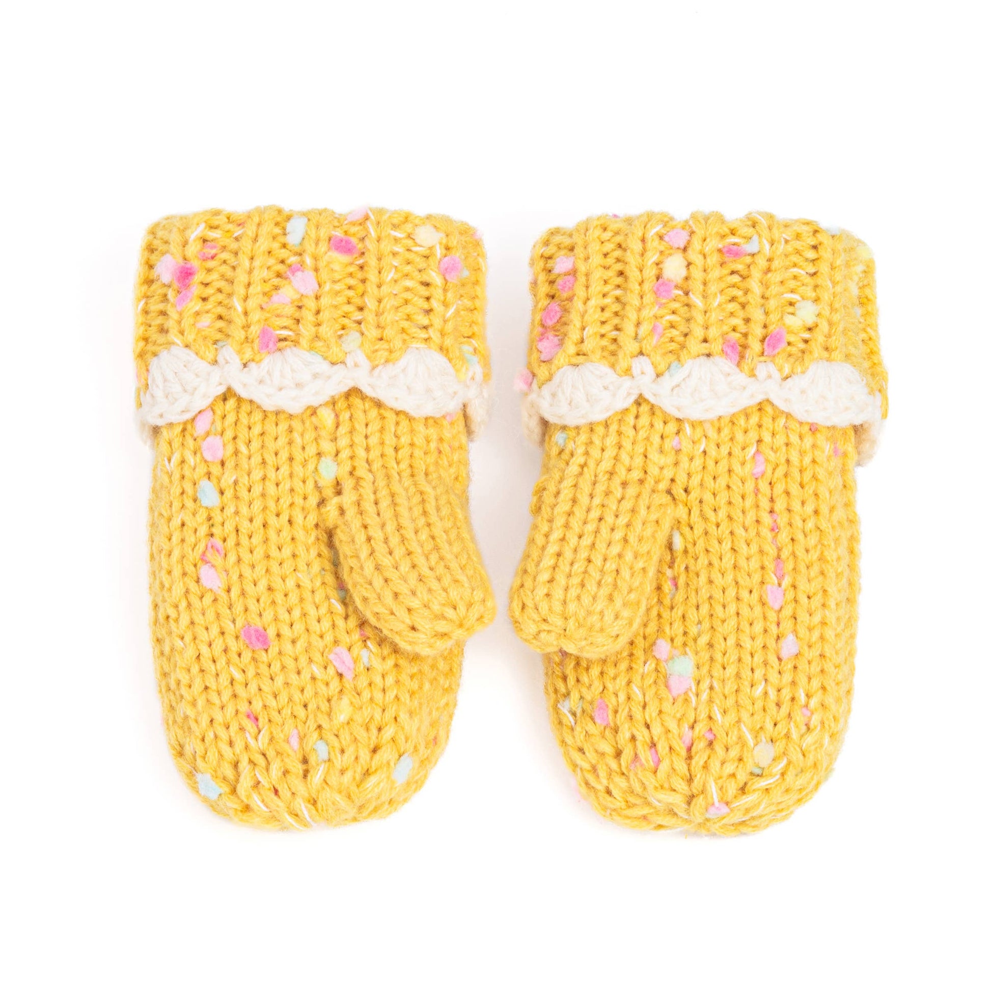 Girls Speckled Knit Mittens with Lace - Yellow 1-3y, 3-6y