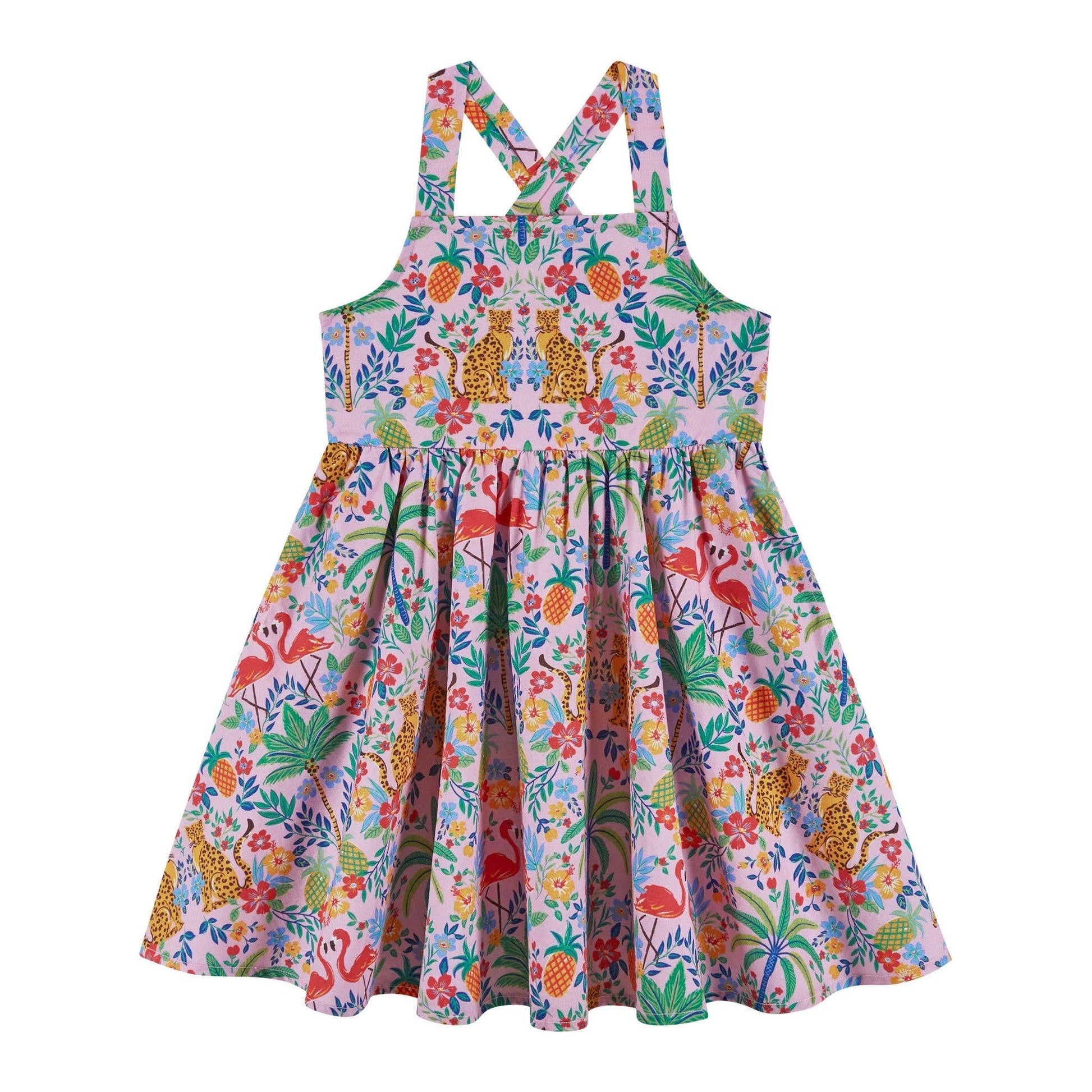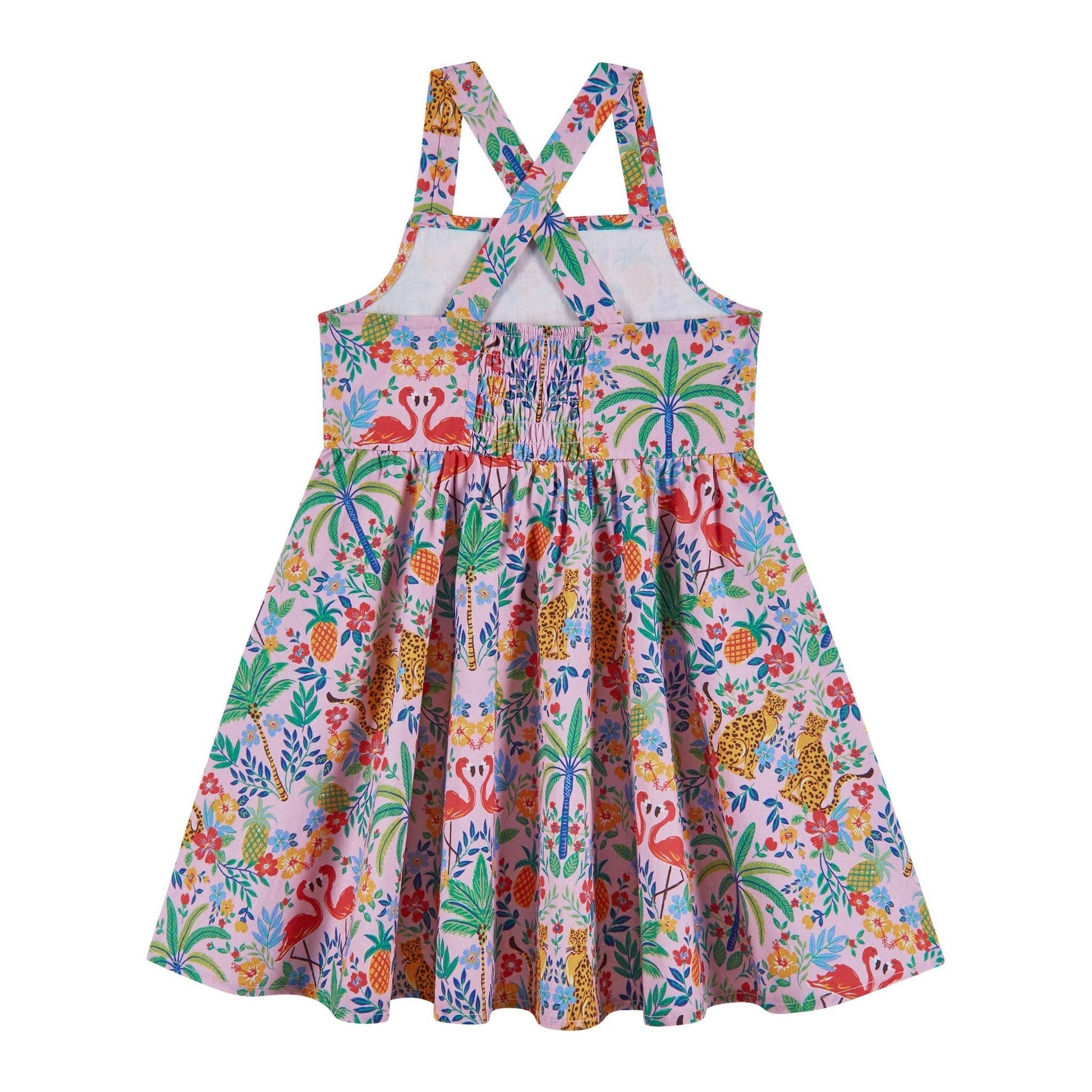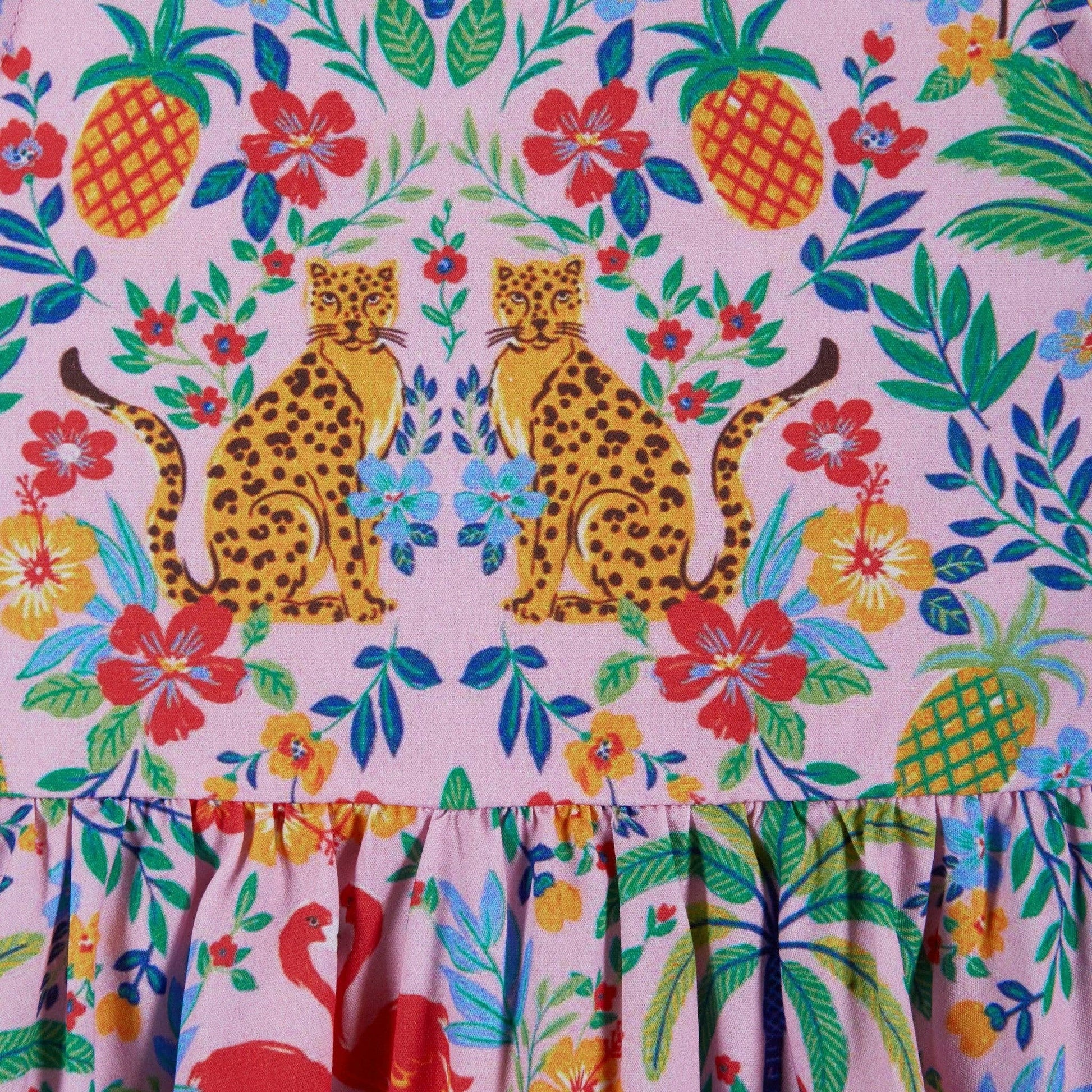 Girls Textured Cotton Poplin Dress | Pink Cheetah
