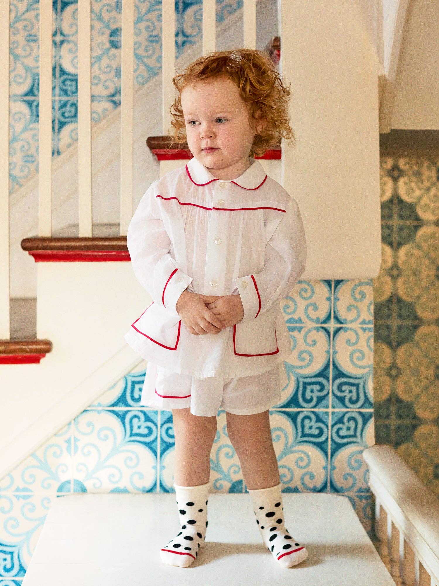 We love these soft boucle dalmatian spots sprinkled all about. One of our greatest hits, these Dalmatian Crews are perfect for boys and girls.