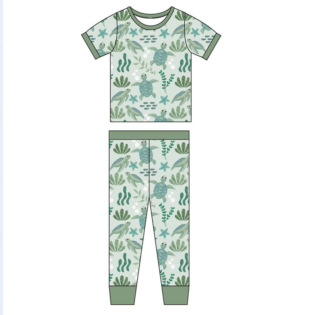 The softest bamboo toddler and kids pajamas in our Save the Sea Turtles pattern! Little ones will love this fun print full of adorable turtles. Check out more with this print for the cutest sibling match!